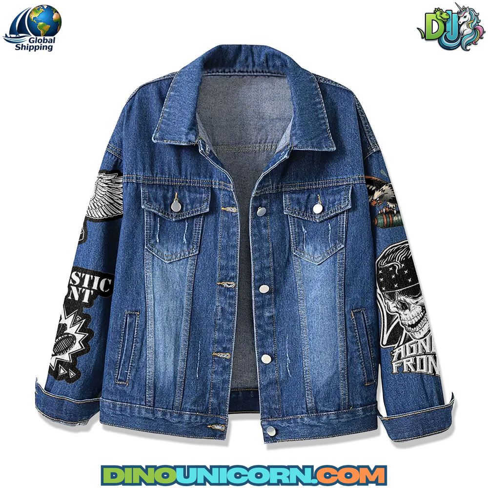 The Agnostic Front denim jacket from DinoUnicorn.com is a handcrafted tribute to the New York hardcore legacy. Built as a streetwear jacket for real fans, it blends premium blue denim with a bold back print denim jacket design that celebrates the Agnostic Front New York Blood Tour 2025. Whether you call it a jean jacket, a rock concert denim jacket, or a hardcore punk denim jacket, this unisex piece is concert-ready and everyday tough.