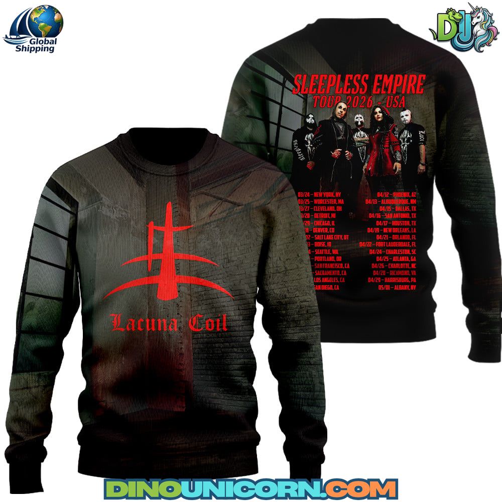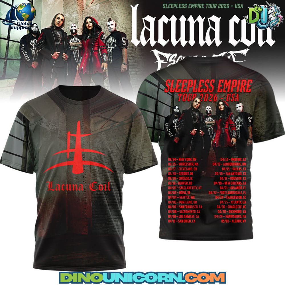 The Lacuna Coil Sleepless Empire Tour 2026 T-shirt channels the raw intensity, emotional depth, and dark elegance that define Lacuna Coil’s live performances. Inspired by the band’s Sleepless Empire Tour across the USA, this shirt transforms the atmosphere of a live metal show into a bold visual statement. As authentic Lacuna Coil tour merch, it captures the balance between melody and aggression that has made the band a cornerstone of gothic and alternative metal. This is more than a Lacuna Coil concert tee; it is a symbol of identity for true metal fans.