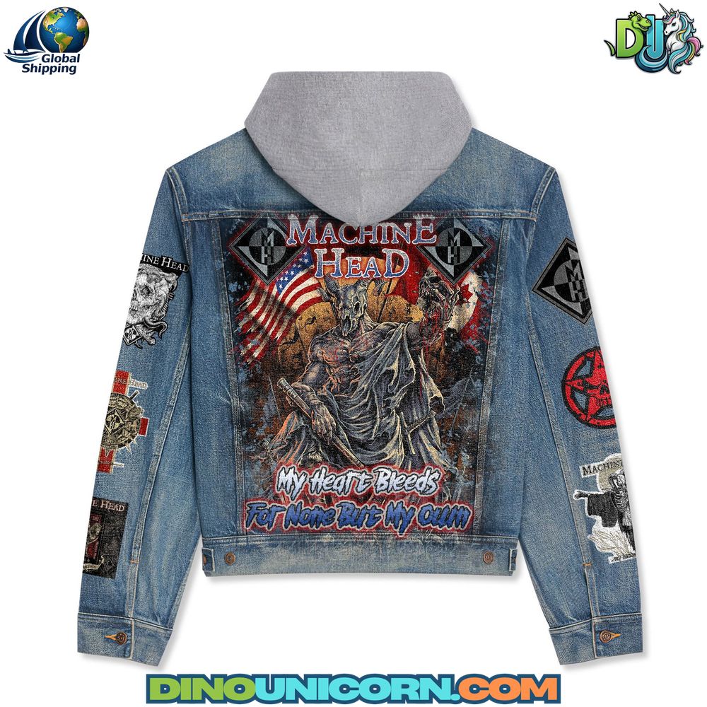 The Machine Head hooded denim jacket by DinoUnicorn is a storm of attitude and craftsmanship — built for fans who live by riffs, rebellion, and raw energy. Combining the power of heavy metal fashion with modern streetwear design, this metal band denim hoodie redefines what fan apparel can be. Inspired by Machine Head’s intensity and stage presence, this handmade band denim coat fuses denim grit with hoodie comfort to create the ultimate festival-ready rock jacket.