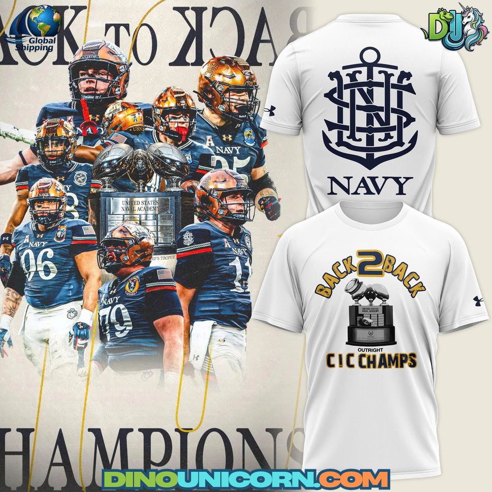 The Navy Midshipmen BACK TO BACK T-shirt from Dinounicorn.com is a bold tribute to dominance, discipline, and tradition. Designed to honor consecutive victories and historic achievement, this piece captures the pride of Navy football culture in a modern, wearable form. It goes beyond standard Navy Midshipmen fan apparel, transforming championship history into a powerful visual statement.