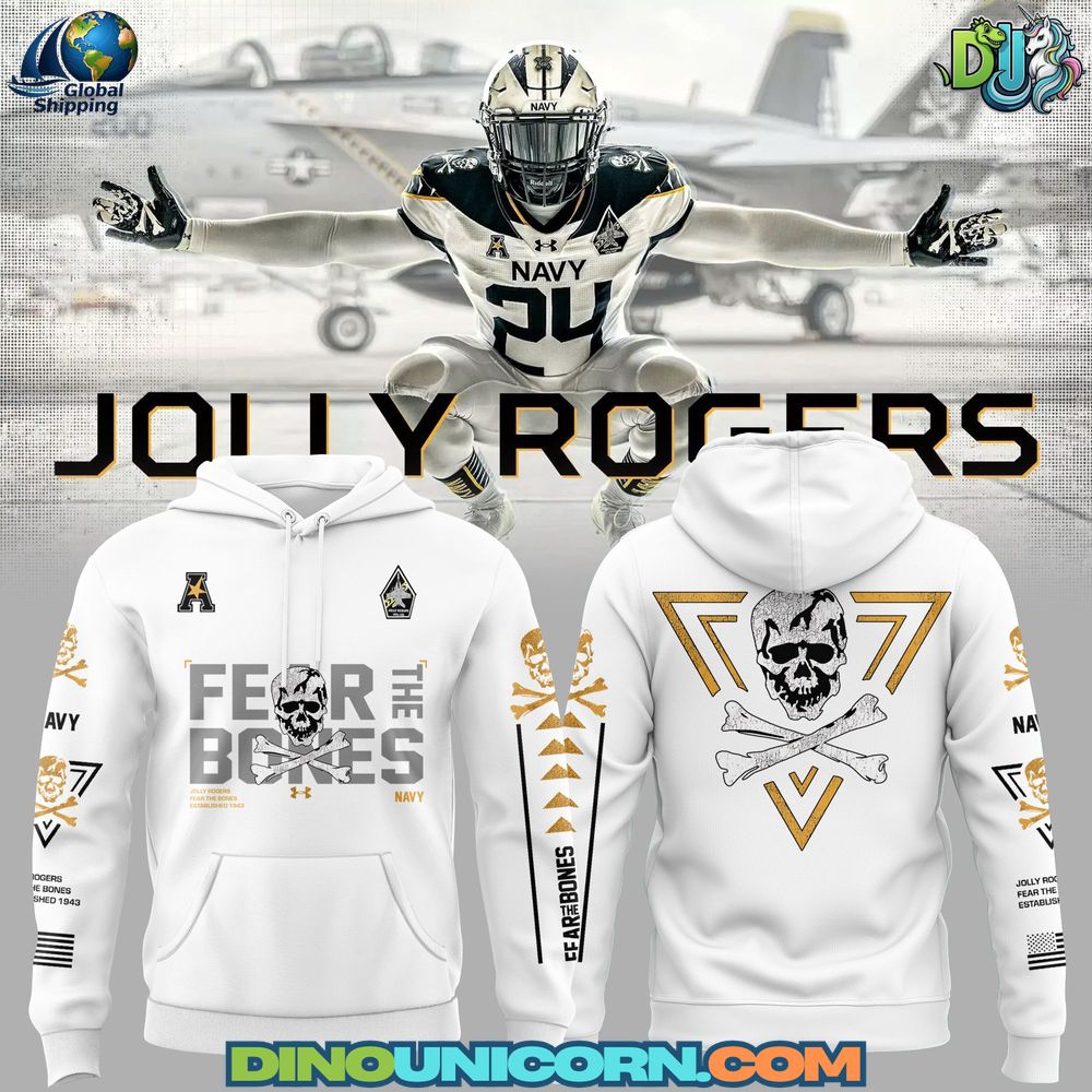 The Navy Midshipmen Jolly Rogers hoodie from Dinounicorn.com is a powerful fusion of football tradition, military heritage, and modern streetwear. Inspired by the legendary Jolly Rogers symbolism and the fearless “Fear the Bones” mentality, this hoodie transforms Navy football identity into a bold, wearable statement.