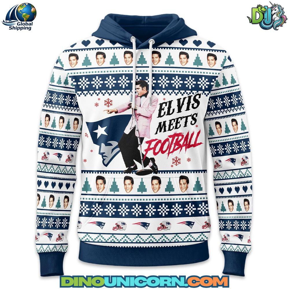 Perfect for festive NFL hoodie collectors, music fans, and football enthusiasts alike, this hoodie is a standout Elvis Presley fan Christmas apparel item. Wear it to celebrate your Patriots holiday spirit hoodie, display it as part of your holiday wardrobe, or gift it as a unique Patriots winter fan gear collectible.