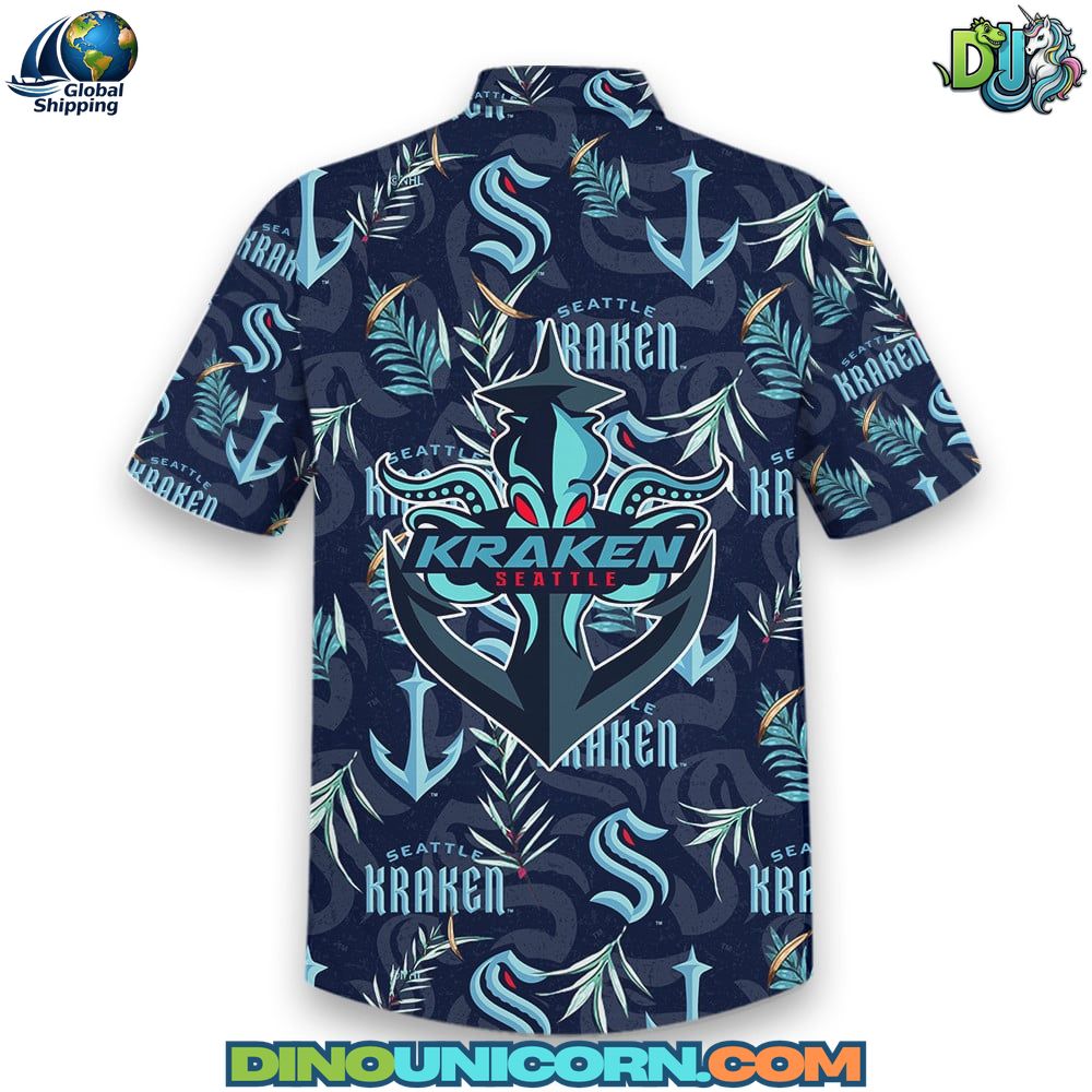 DinoUnicorn’s design team specializes in handmade sportswear with a pop-culture edge, blending the Kraken’s bold nautical branding with the laid-back charm of Hawaiian resort fashion. Every print is precision-calibrated to maintain official team colors—from the ice blue highlights to the deep navy base—ensuring the shirt meets premium fanwear standards. With our history of crafting limited-run NHL tropical shirts, this piece stands as proof of expert-level quality and detail.